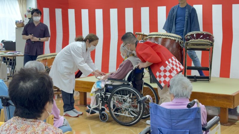 続いて、職員による本格的な和太鼓の演奏が披露されました。
