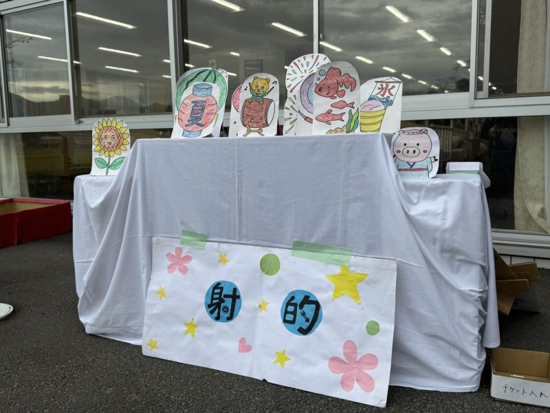 屋外ブースでは、屋外では「射的」や「紙の魚釣り」など、手作りの縁日屋台が並びました。