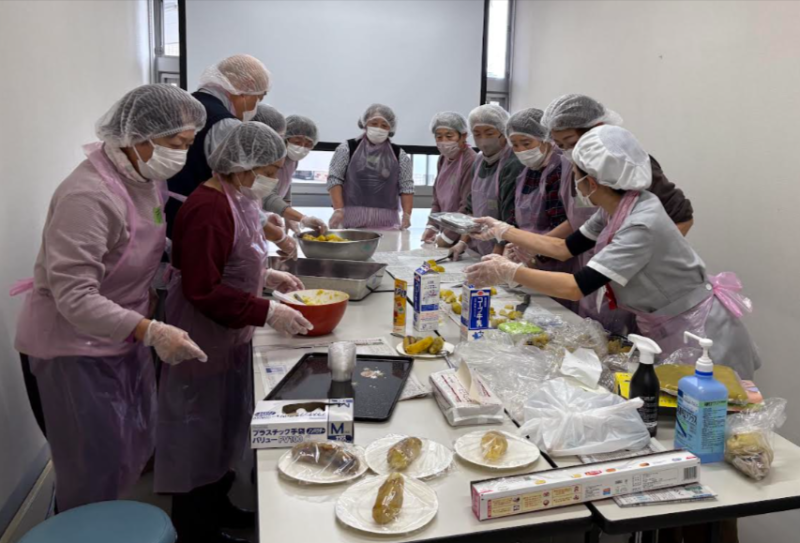 皮を剥いて食べやすくカットしたり、潰してバターと合わせてスイートポテトにしたり、カップに盛り付けたりと、それぞれが役割分担し、息の合った作業であっという間に準備が整いました。