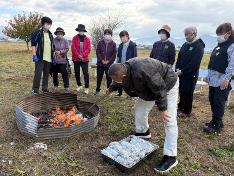 準備の様子を見に来られた利用者様からは、「おいしそう!お芋が食べられるなんて夢みたい!」といったお声も聞かれ、焚火のゆらめきと香ばしい匂いに包まれた穏やかな時間となりました。