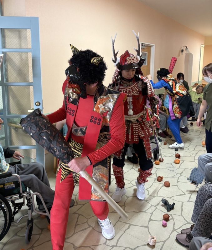 無事に終了し、みんなで今年一年の厄払いができた節分。さらに甲冑をお貸しいただいたことで、特別ゲストの戦国武将も一緒に豆まきを行うことができ、ご利用者様にも大変喜んでいただけました。