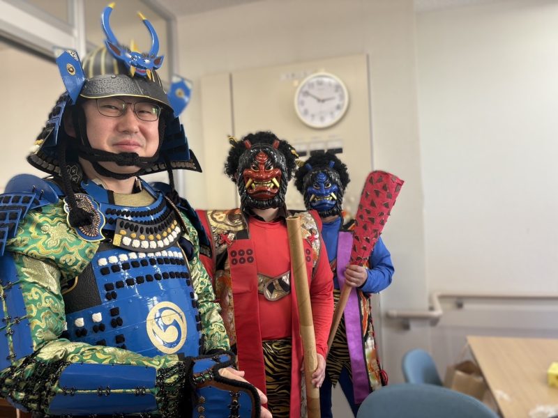 今年は、鬼と戦国武将に扮した職員が各フロアを順にまわり、全フロアで豆まきを開催。久しぶりに館内全体が一体となる、にぎやかな節分となりました。