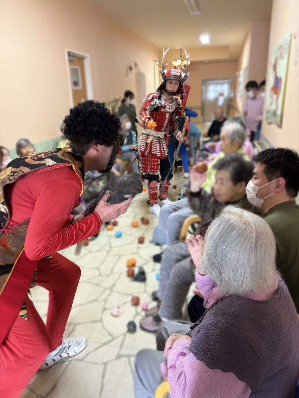 また、今回の戦国武将の甲冑は、通所とクラシ・エール川西のご利用者様からお貸しいただいたもの。迫力ある甲冑姿に、登場前から「どんな武将が来るの?」とワクワクした声が聞かれました。